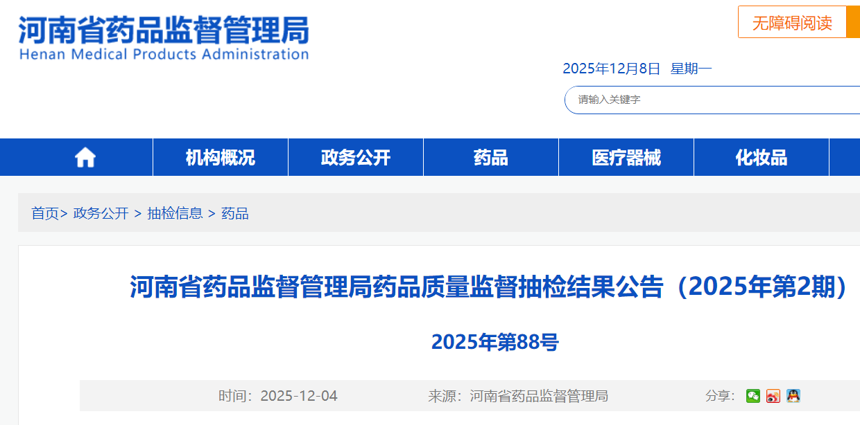 河南省藥品監(jiān)督管理局官網(wǎng)截圖