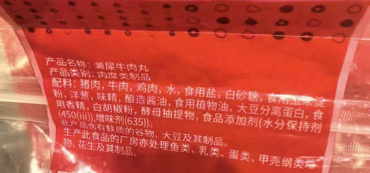 根據(jù)預(yù)包裝食品標(biāo)簽國家標(biāo)準(zhǔn),配料表內(nèi)的原料按占比高低依次排列,直觀反映產(chǎn)品原料構(gòu)成情況。然而記者調(diào)查發(fā)現(xiàn),部分火鍋肉丸的產(chǎn)品名稱,與其配料表中標(biāo)注的實(shí)際含量最高的原料難以對應(yīng)。例如標(biāo)稱“牛肉丸”的產(chǎn)品,配料表首位實(shí)為豬肉;標(biāo)注“墨魚丸”“章魚丸”的產(chǎn)品,核心原料卻是魚糜等,與消費(fèi)者對產(chǎn)品名稱的直觀認(rèn)知形成偏差,可能影響其購買判斷。