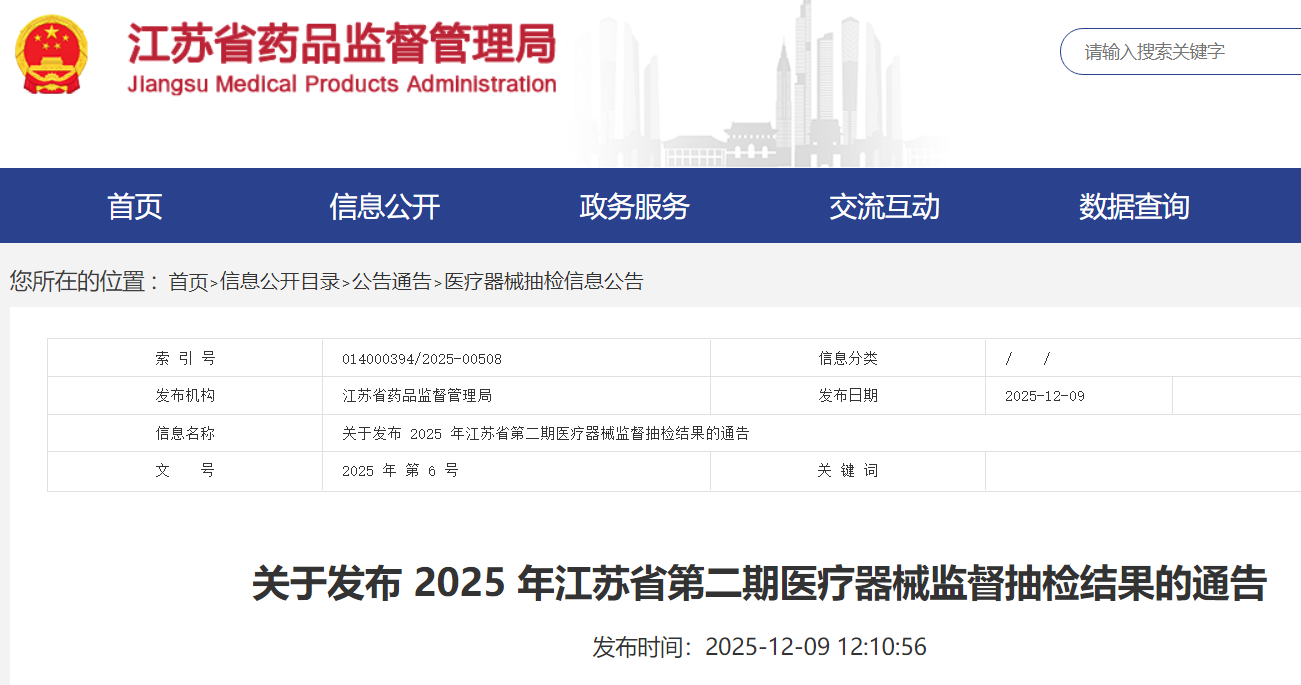 江蘇省藥品監(jiān)督管理局官網(wǎng)截圖