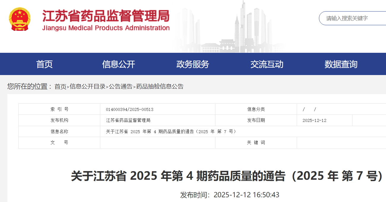 江蘇省藥品監(jiān)督管理局官網(wǎng)截圖