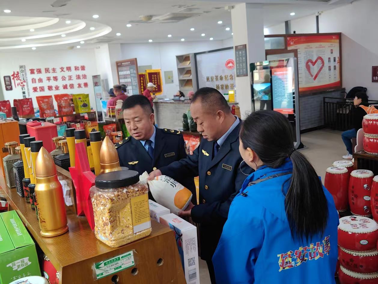 延安市市場(chǎng)監(jiān)管局開(kāi)展節(jié)日消費(fèi)市場(chǎng)專項(xiàng)檢查。延安市市場(chǎng)監(jiān)管局供圖