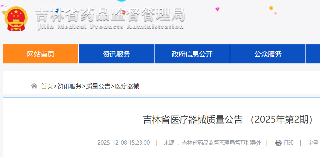 吉林省藥品監(jiān)督管理局官網(wǎng)截圖