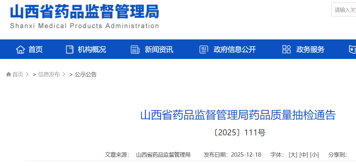 為加強(qiáng)藥品質(zhì)量監(jiān)管,保障公眾用藥安全有效,按照《2025年山西省藥品監(jiān)督抽檢計(jì)劃》,山西省藥品監(jiān)督管理局組織對全省藥品生產(chǎn)、經(jīng)營、使用環(huán)節(jié)進(jìn)行藥品質(zhì)量抽查檢驗(yàn)?,F(xiàn)將抽檢發(fā)現(xiàn)不符合規(guī)定的5批次藥品信息予以通告(詳見附件)。