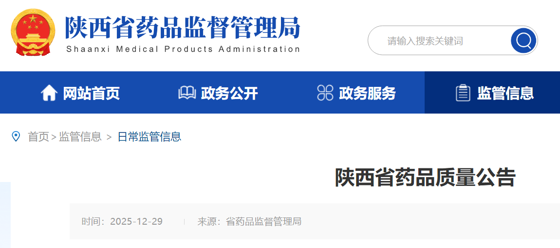 陜西省藥品監(jiān)督管理局官網(wǎng)截圖