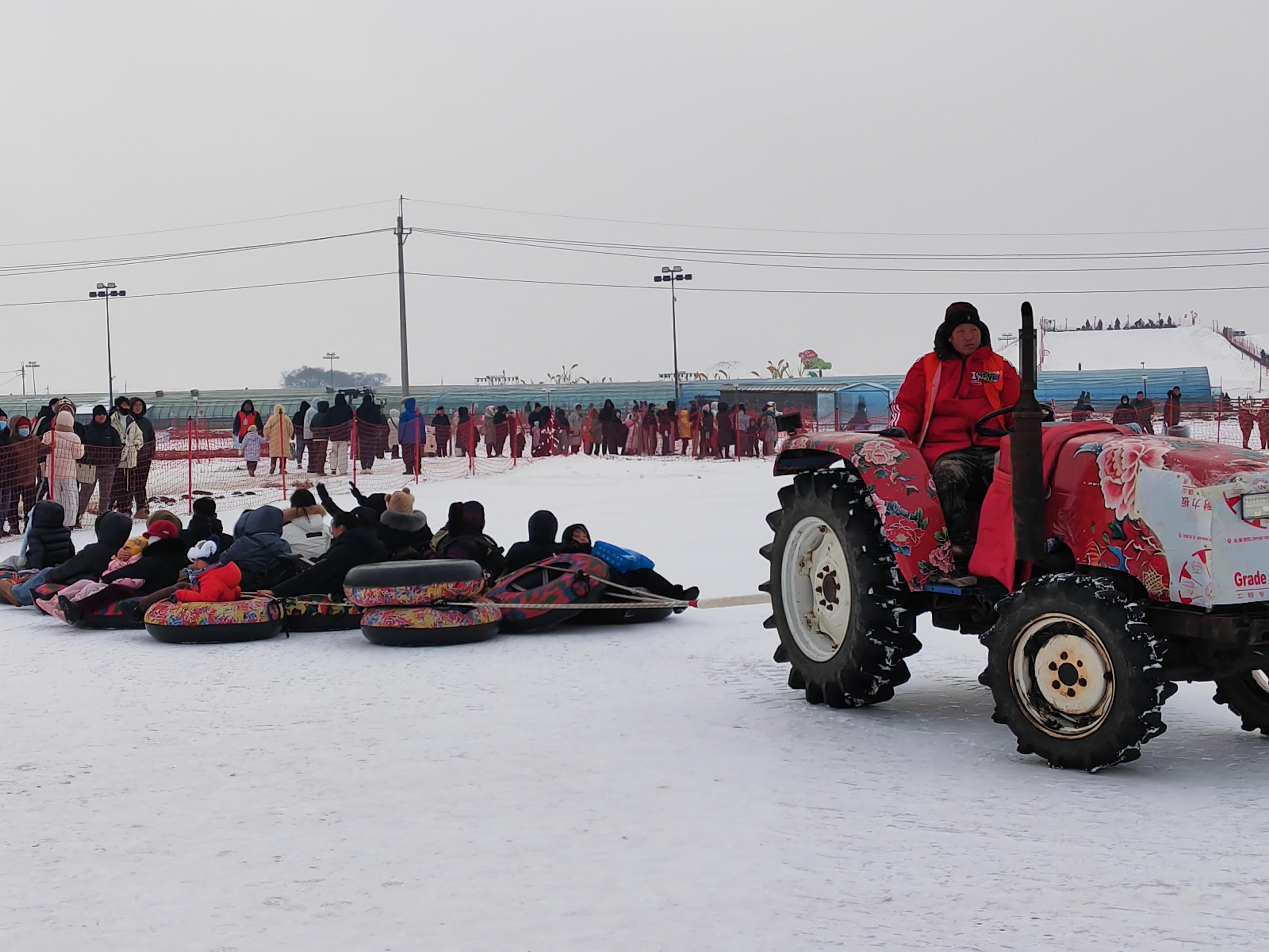 2025年12月28日,記者在沈陽稻夢小鎮(zhèn)•冰雪大世界,看到一位工作人員駕駛著拖拉機拖拽著坐滿游客的輪胎在雪地上轉(zhuǎn)了一圈又一圈,更多的游客在場地外排起長隊等候入場。在游客輪換上下的間隙,工作人員對記者說,他是當?shù)氐霓r(nóng)民,春夏秋3季開拖拉機在小鎮(zhèn)里干農(nóng)活,冬季旅游季更閑不著,根本沒時間“貓冬”。