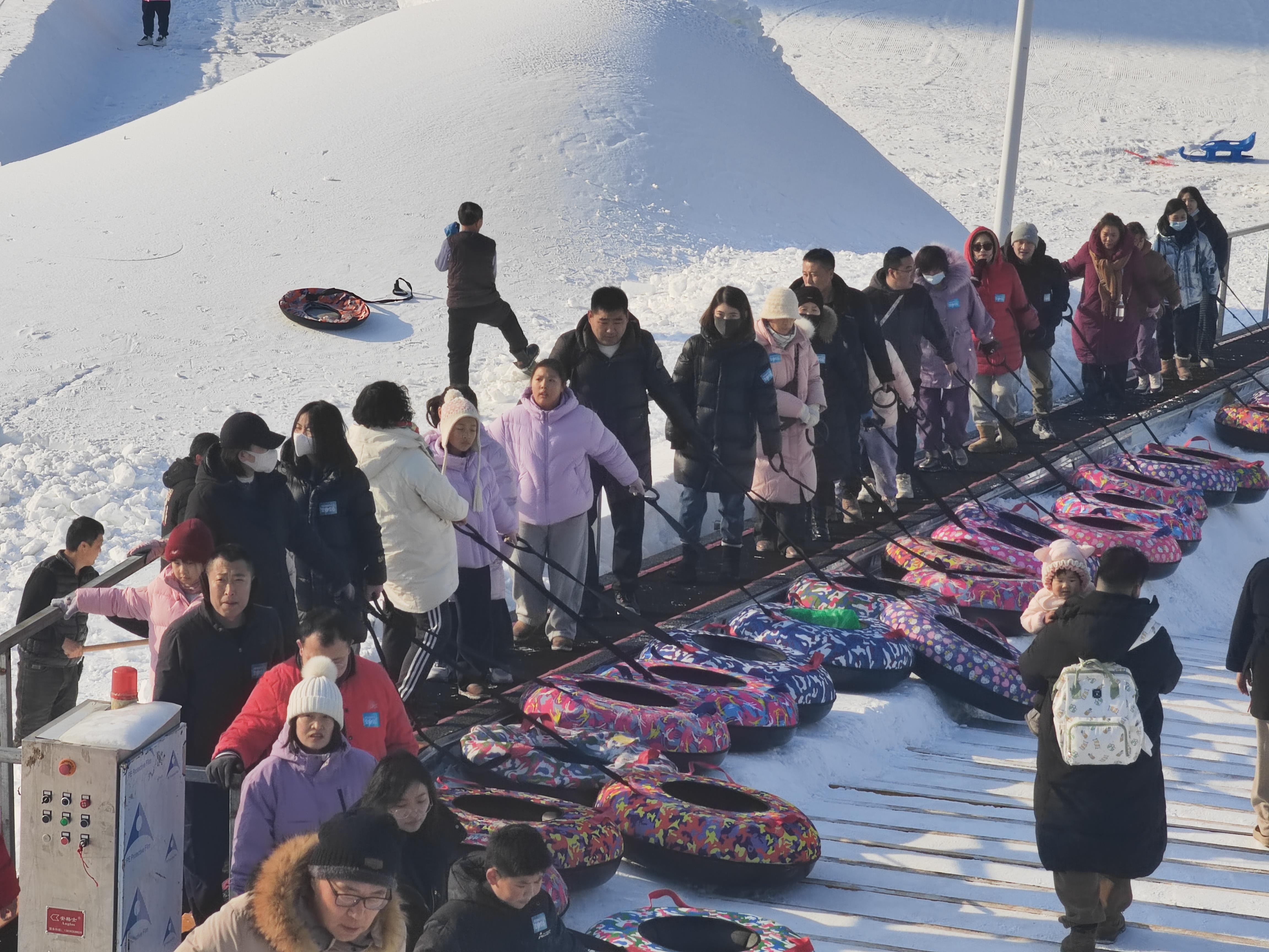 滑雪圈的場(chǎng)地口排起了長(zhǎng)隊(duì)。王文郁/攝
