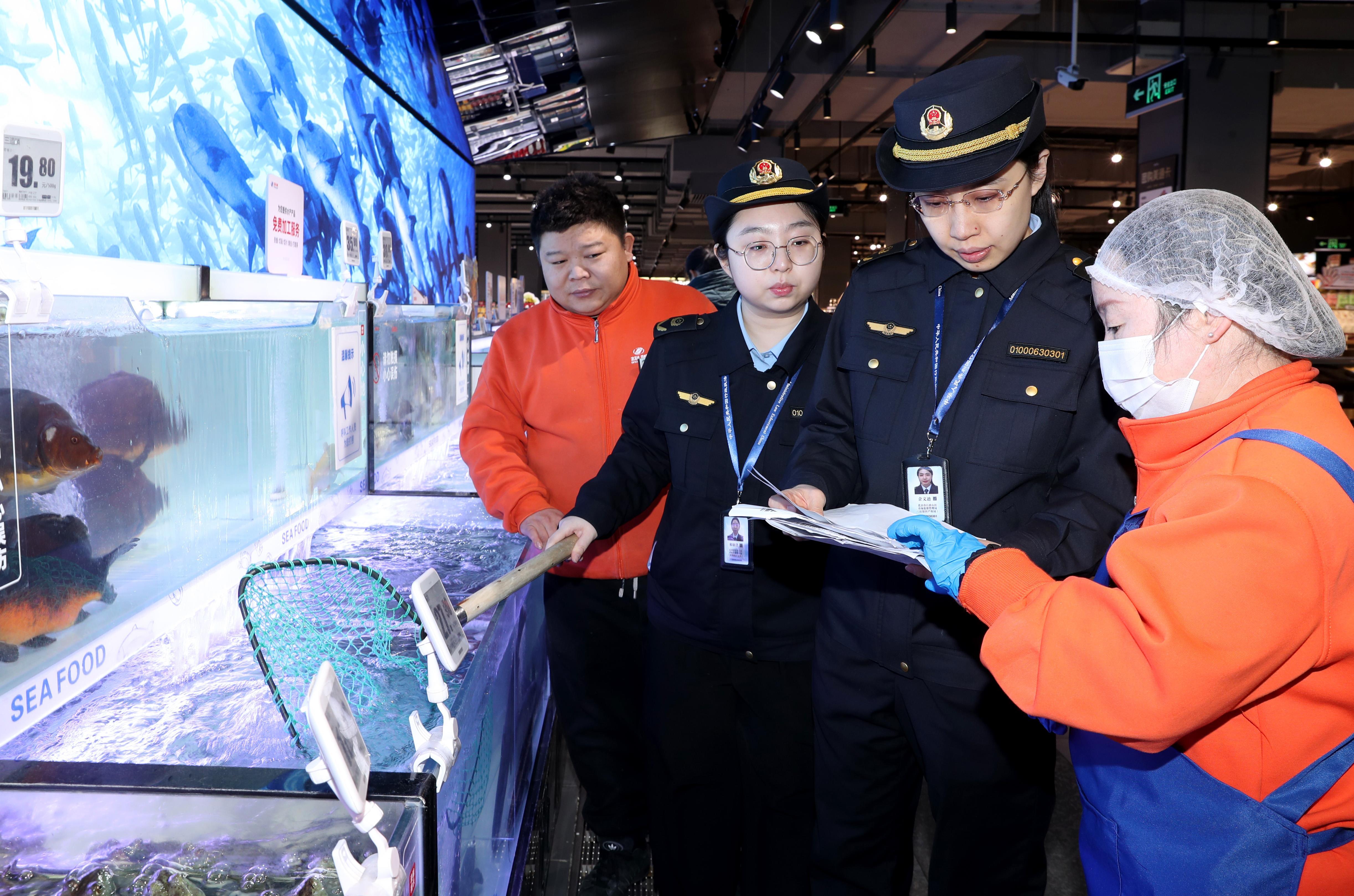 1月19日,北京市石景山區(qū)市場(chǎng)監(jiān)管局開(kāi)展水產(chǎn)品專項(xiàng)檢查行動(dòng)。執(zhí)法人員核查商家進(jìn)貨憑證、產(chǎn)品檢疫證明等并開(kāi)展抽樣檢測(cè),保障產(chǎn)品質(zhì)量安全,防止來(lái)源不明的產(chǎn)品進(jìn)入市場(chǎng)。