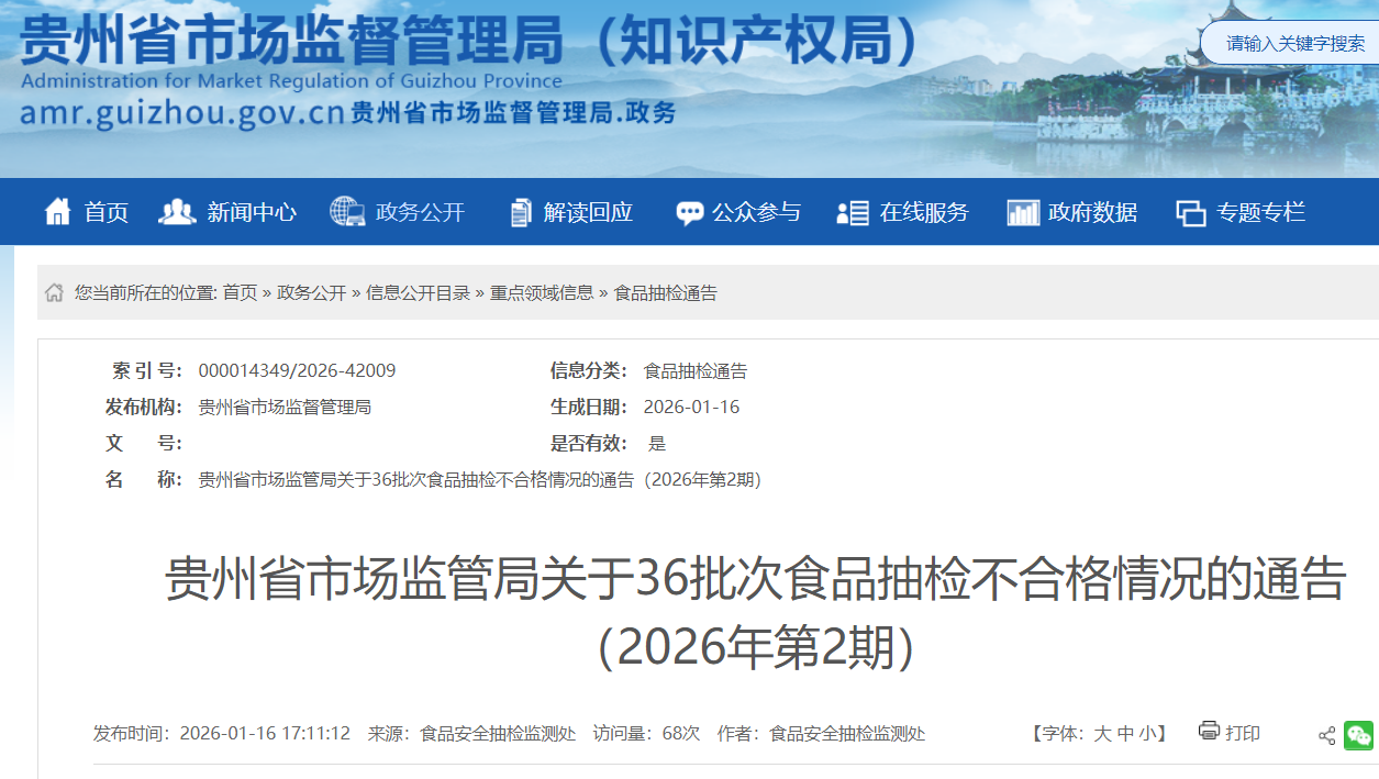 對抽檢發(fā)現(xiàn)的不合格食品,貴州省市場監(jiān)管局已責成屬地市場監(jiān)管部門立即組織開展核查處置,查清產品流向,督促企業(yè)采取下架、召回不合格產品等措施控制風險;對違法違規(guī)行為,依法及時處理。