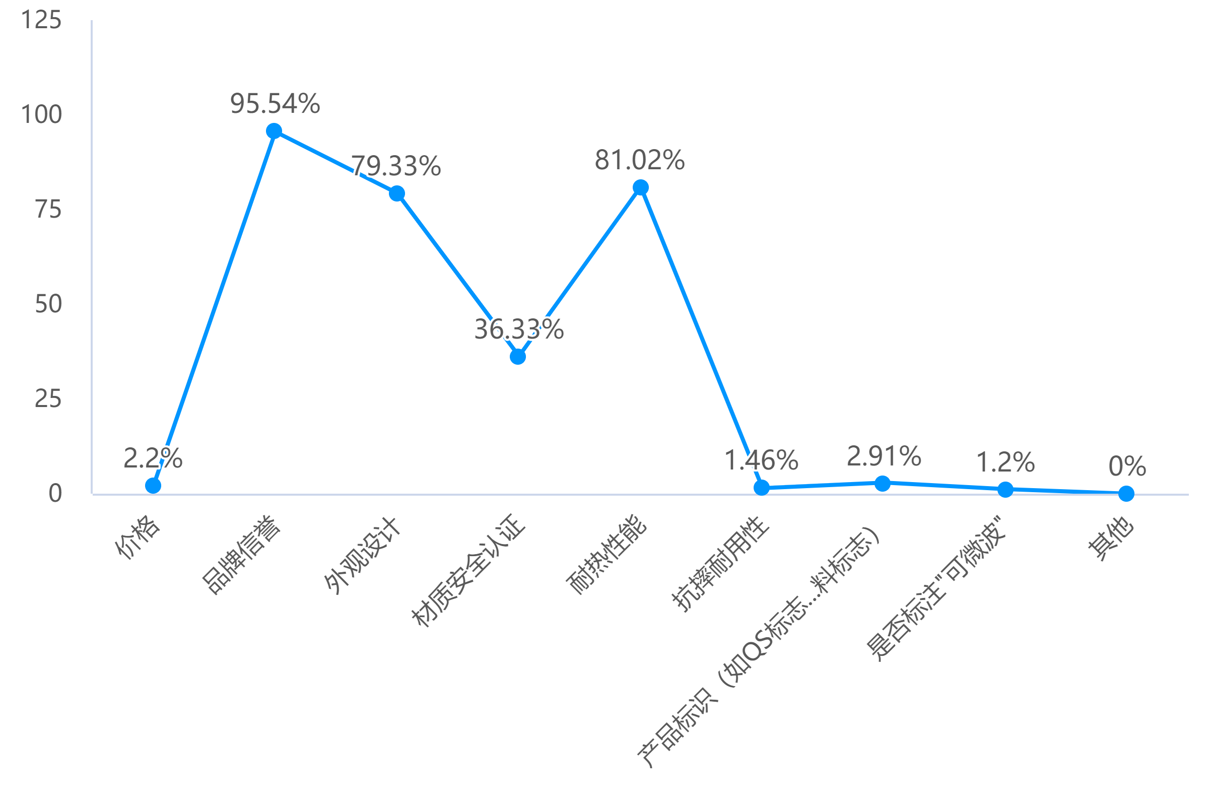 調(diào)查顯示,大多數(shù)消費者選購時優(yōu)先關(guān)注品牌(95.85%)、耐熱性(81.02%)、外觀顏值(79.33%),只有36.33%的人會關(guān)注“材質(zhì)安全認證”(比如 QS 標志)。