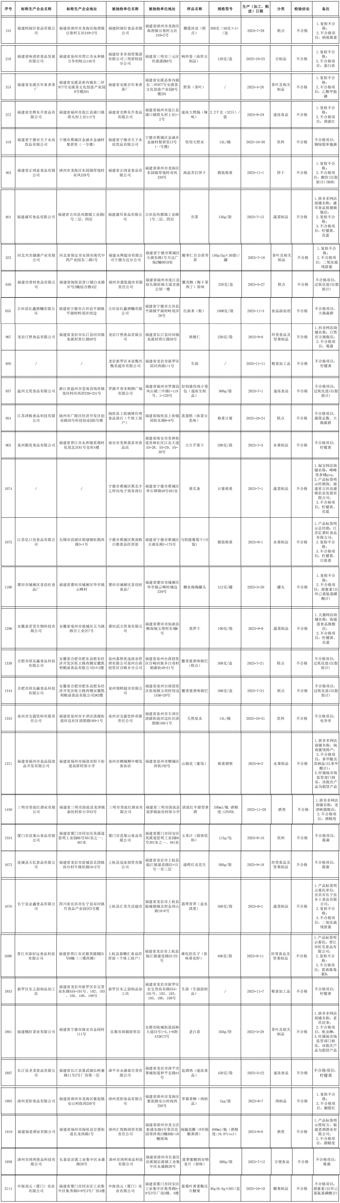 本期通告的監(jiān)督抽檢信息涉及糧食加工品、食用油(含油脂及其制品)、調(diào)味品、肉制品、乳制品、飲料、方便食品、餅干、罐頭、冷凍飲品、速凍食品、薯類和膨化食品、糖果制品、茶葉及相關(guān)制品、酒類、蔬菜制品、水果制品、炒貨食品及堅果制品、蛋制品、食糖、水產(chǎn)制品、淀粉及淀粉制品、糕點、豆制品、蜂產(chǎn)品、特殊膳食食品、食品添加劑、食用農(nóng)產(chǎn)品等28大類食品2118批次,合格2083批次,不合格35批次。