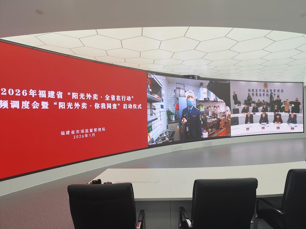 在“陽光外賣•你我同查”活動(dòng)現(xiàn)場(chǎng),福建省市場(chǎng)監(jiān)管局智慧監(jiān)管指揮中心隨機(jī)視頻連線一線執(zhí)法人員,遠(yuǎn)程調(diào)度福州、漳州、泉州、莆田等地外賣經(jīng)營(yíng)現(xiàn)場(chǎng)檢查全過程,構(gòu)建省、市、縣三級(jí)聯(lián)動(dòng)監(jiān)管格局,推動(dòng)網(wǎng)絡(luò)餐飲食品安全治理走深走實(shí)。