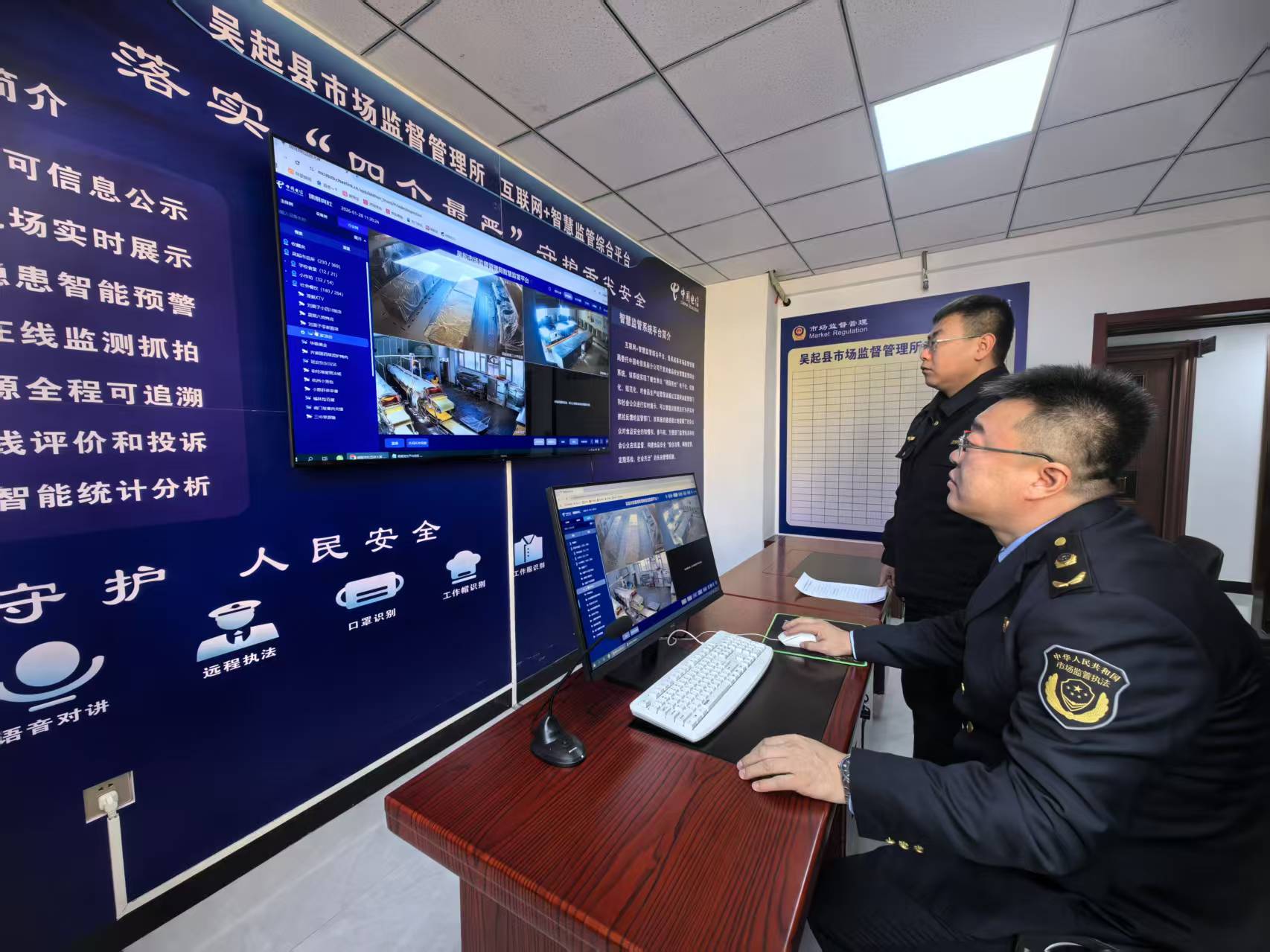 吳起市場(chǎng)監(jiān)管所以智慧監(jiān)管提升食品安全保障水平。徐文智/攝