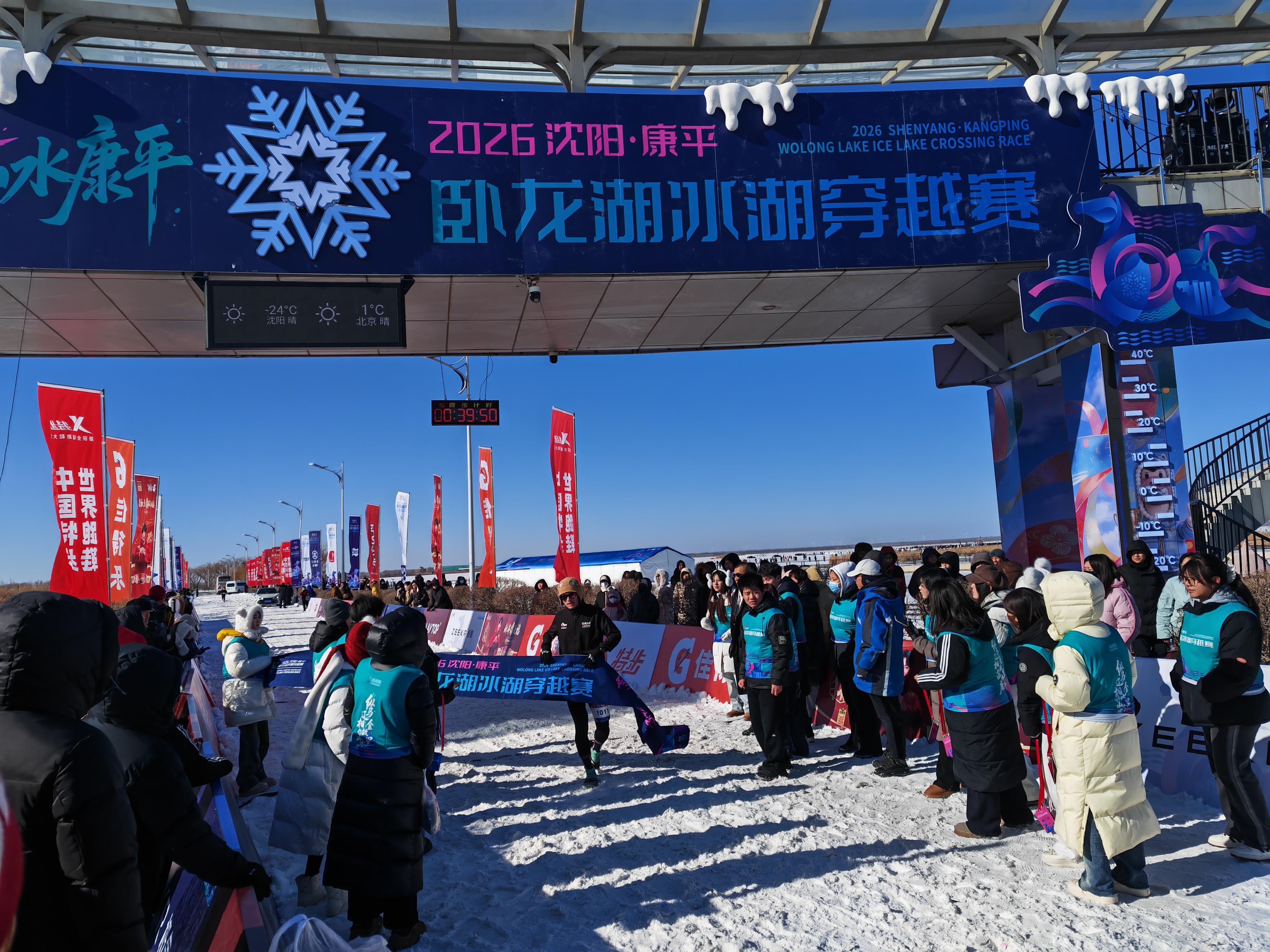 2000人規(guī)模的冰湖穿越賽,設(shè)置10公里和20公里直通2026“康馬”專屬福利。參跑冰雪馬拉松的人們,鞋底套上防滑冰爪,在零下20攝氏度的嚴(yán)寒中穿湖而過(guò),腳下一路嘎吱作響,配速節(jié)奏感十足,繪就了一條冬捕季的流動(dòng)風(fēng)景線。幾乎就在收網(wǎng)魚(yú)躍冰面的同時(shí),湖邊航站樓門(mén)前的馬拉松賽終點(diǎn),迎來(lái)一批又一批參賽人員撞線完賽。