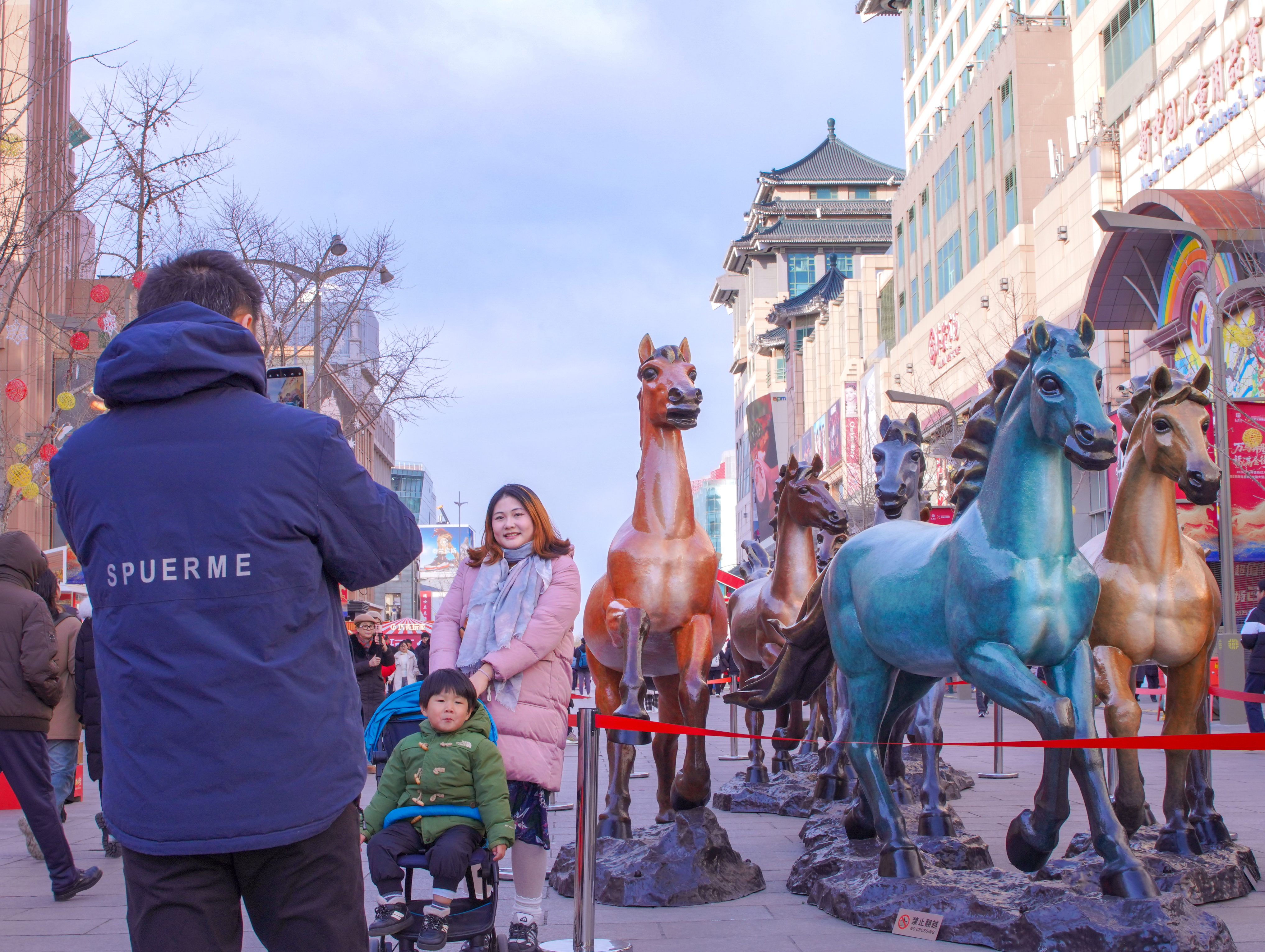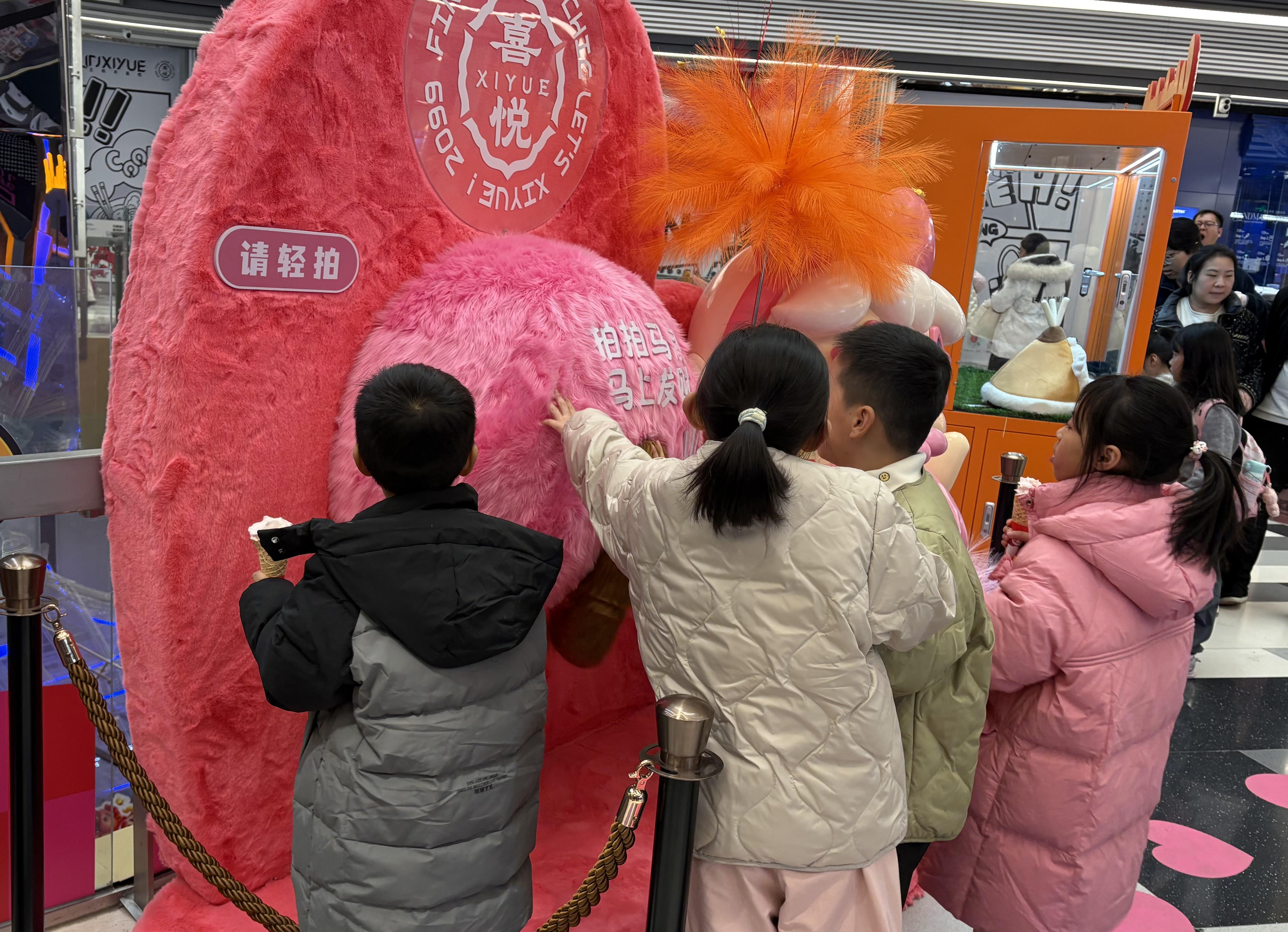 北京王府井商圈某商場內(nèi),小朋友在打卡“拍拍馬屁”。