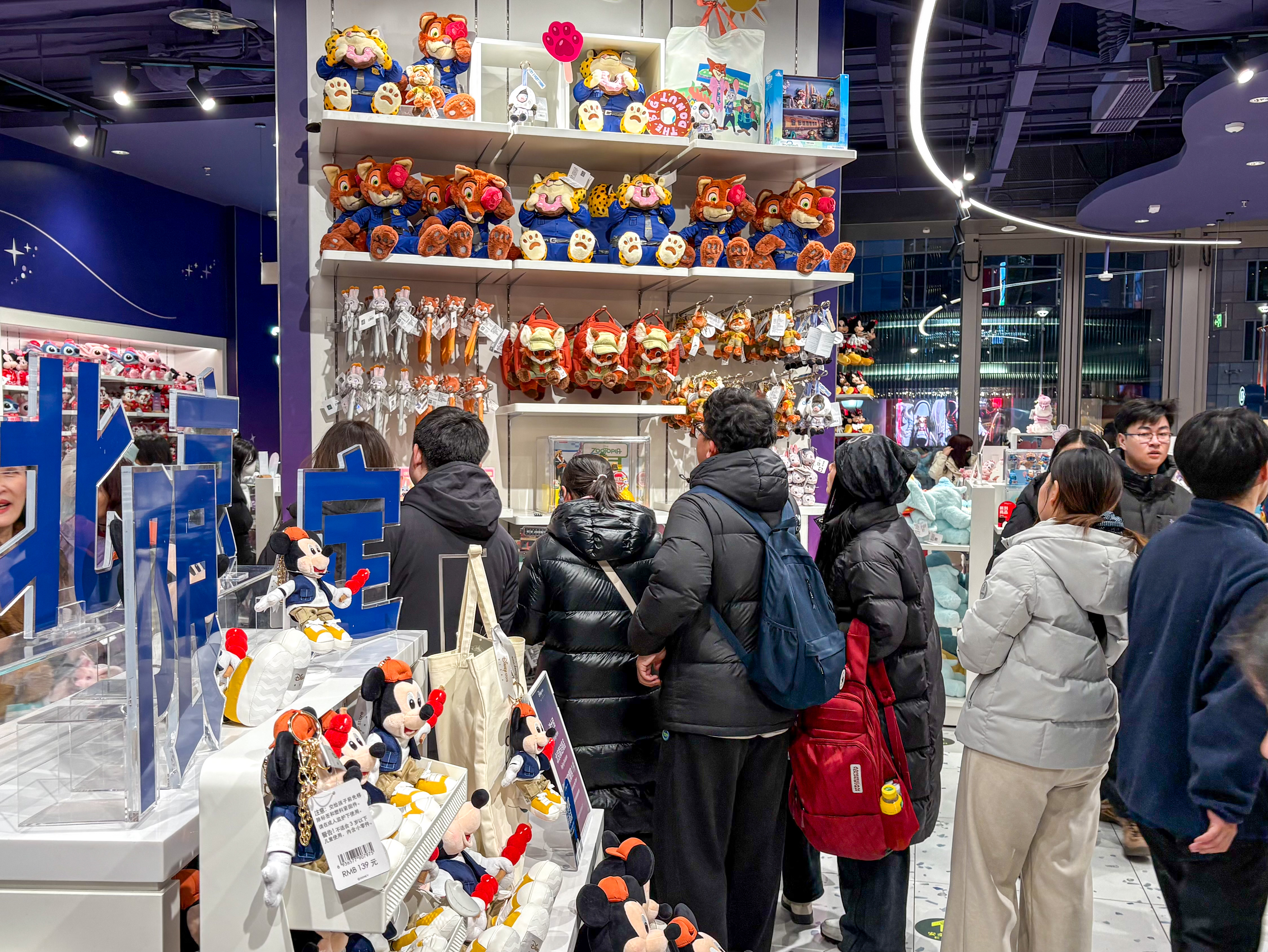 在迪士尼快閃店中,游客在挑選心儀的動漫商品。