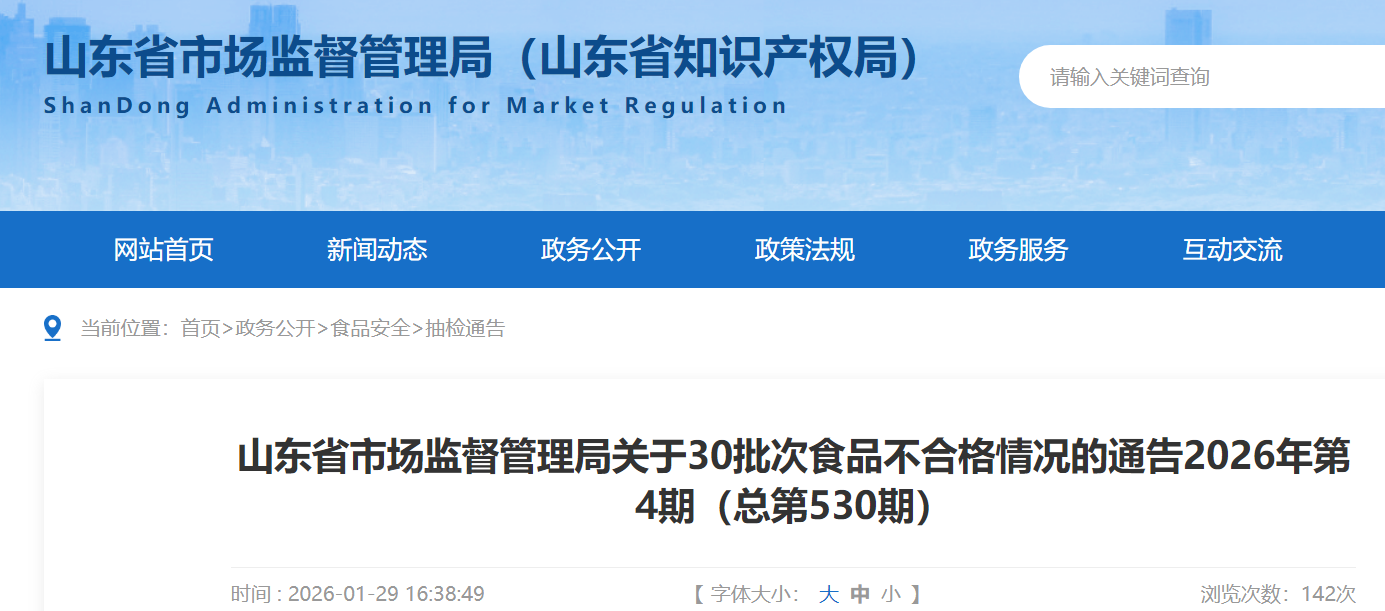 根據(jù)《中華人民共和國食品安全法》及其實施條例等有關規(guī)定和山東省食品安全監(jiān)督抽檢計劃安排,為進一步保障食品安全,省市場監(jiān)管局對食用農(nóng)產(chǎn)品、炒貨食品及堅果制品、罐頭、水果制品、飲料、餐飲食品、速凍食品、豆制品、餅干、糕點、食糖、薯類和膨化食品、蜂產(chǎn)品、糖果制品、酒類、肉制品、蔬菜制品、水產(chǎn)制品、糧食加工品共1454批次樣品進行了監(jiān)督抽檢,其中合格產(chǎn)品1424批次,不合格產(chǎn)品30批次。具體情況見附件。
