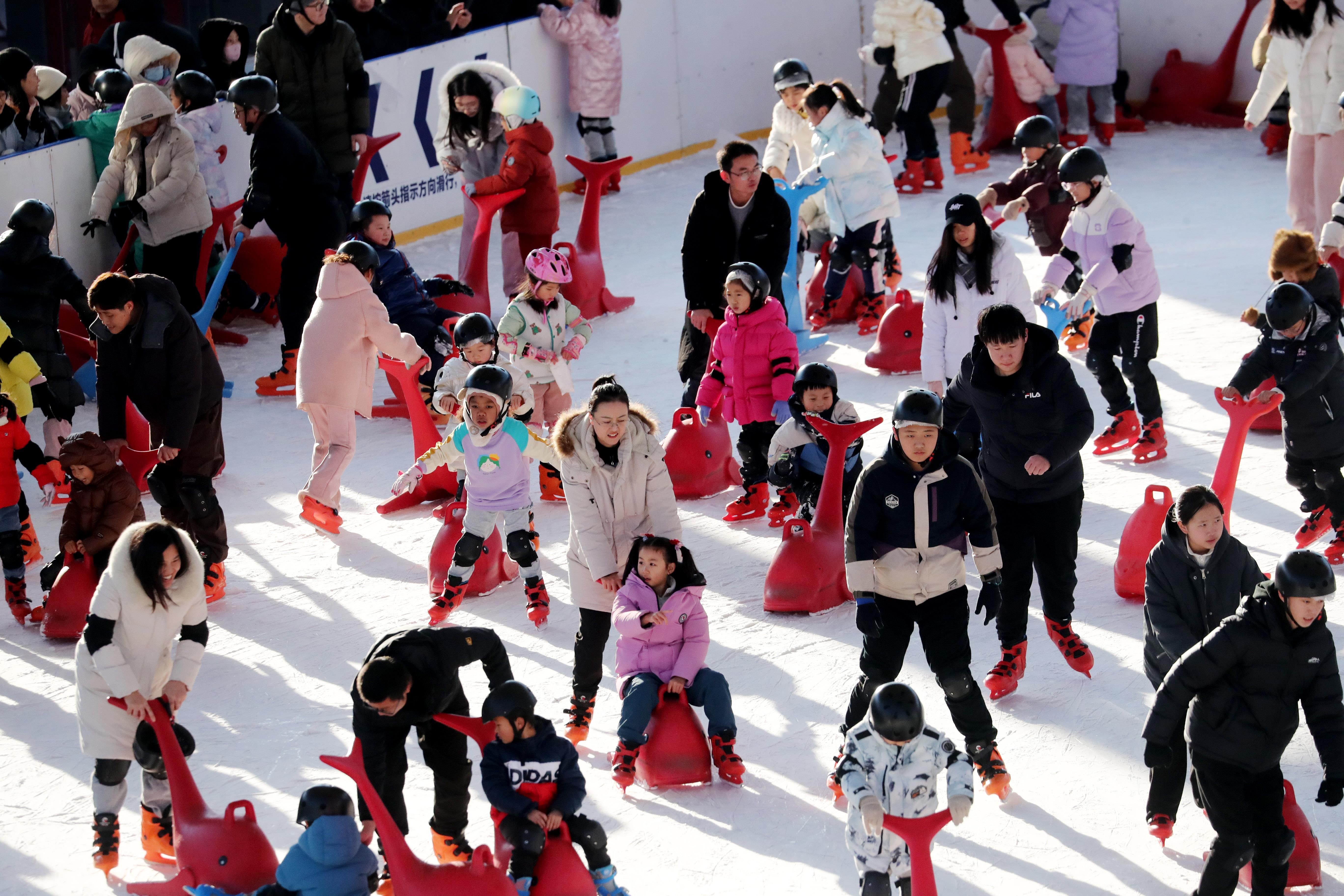 寒假伊始,不少中小學(xué)生走進(jìn)冰場暢享冰雪樂趣,開啟歡樂的寒假生活。近日,記者在北京五棵松華熙廣場的滑冰場看到,冰場人頭攢動,冰面上少年身影穿梭往來,有的身姿優(yōu)雅、自在滑行,有的相互攙扶、穩(wěn)步前行,在一次次滑倒與起身中不斷突破自我。