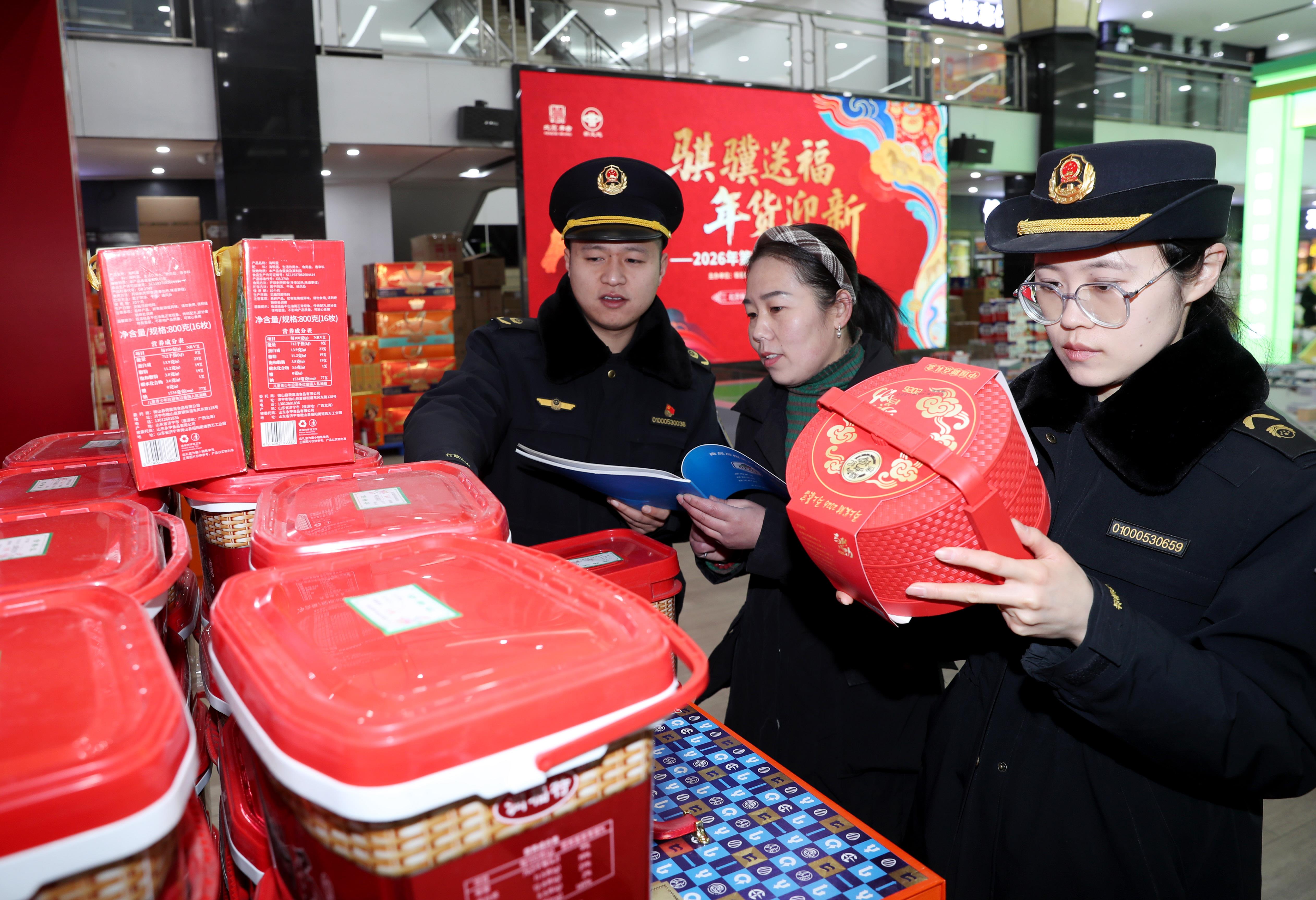 2月4日,北京市豐臺區(qū)市場監(jiān)管局開展年貨市場專項檢查行動,對超市、商場等重點場所銷售的年貨商品進行“體檢”。