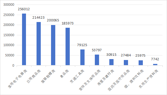 根據(jù)2025年商品大類投訴數(shù)據(jù),家用電子電器類、日用商品類、服裝鞋帽類、食品類、交通工具類投訴量居前五位。與2024年相比,日用商品類、服裝鞋帽類投訴量比重上升,煙、酒和飲料類投訴量比重下降。