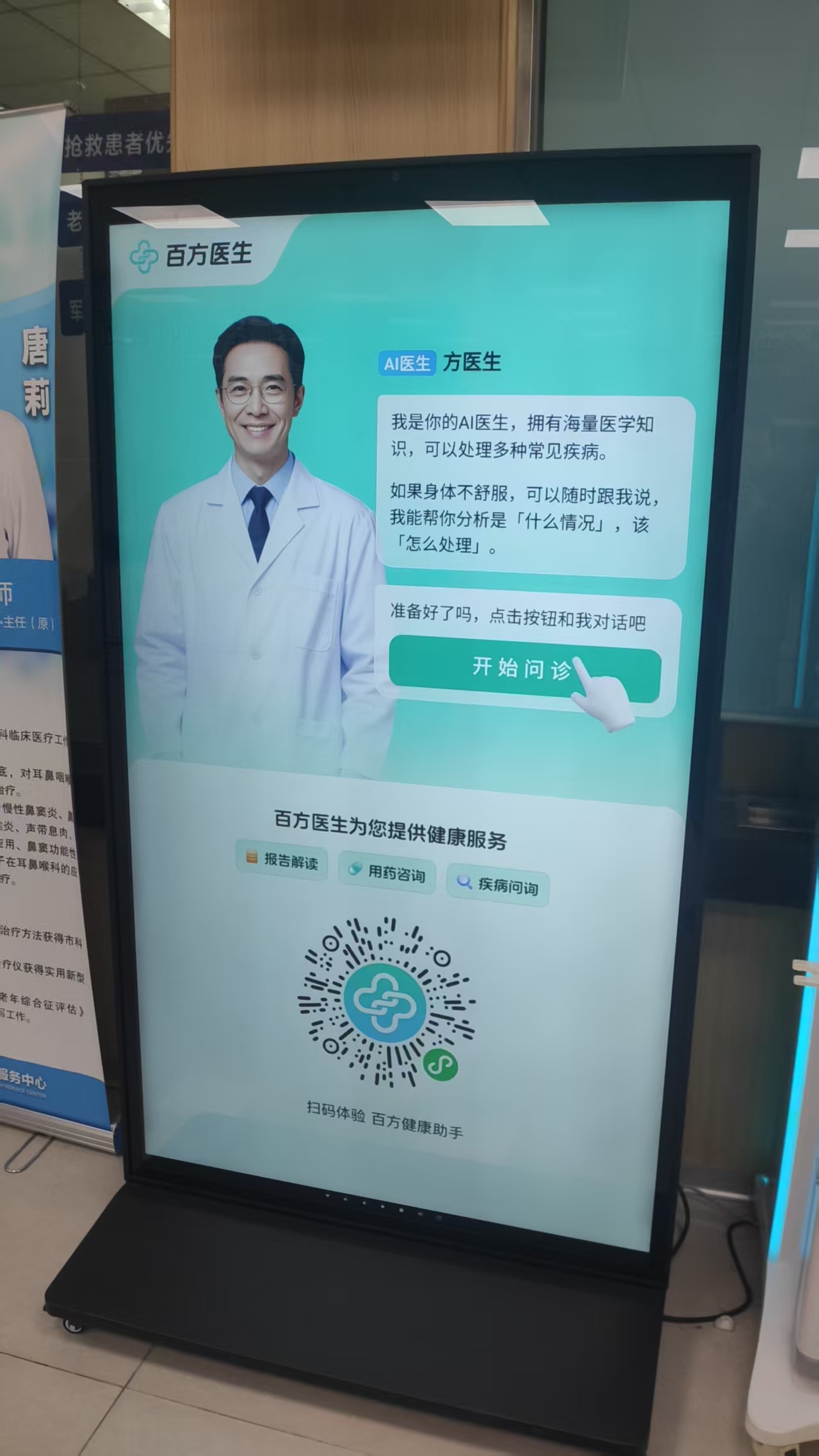 在北京市海淀區(qū)花園路社區(qū)衛(wèi)生服務(wù)中心,記者看到了位于門診大廳的數(shù)字醫(yī)生。記者詢問“腰痛該掛什么科室”,數(shù)字醫(yī)生在接連詢問了幾個相關(guān)問題后,向記者提出了選擇骨科或者脊柱外科就診的建議。衛(wèi)生服務(wù)中心工作人員告訴記者,數(shù)字醫(yī)生能提供疾病智能咨詢和就診流程導(dǎo)引服務(wù),入駐門診大廳后吸引了不少人來體驗。