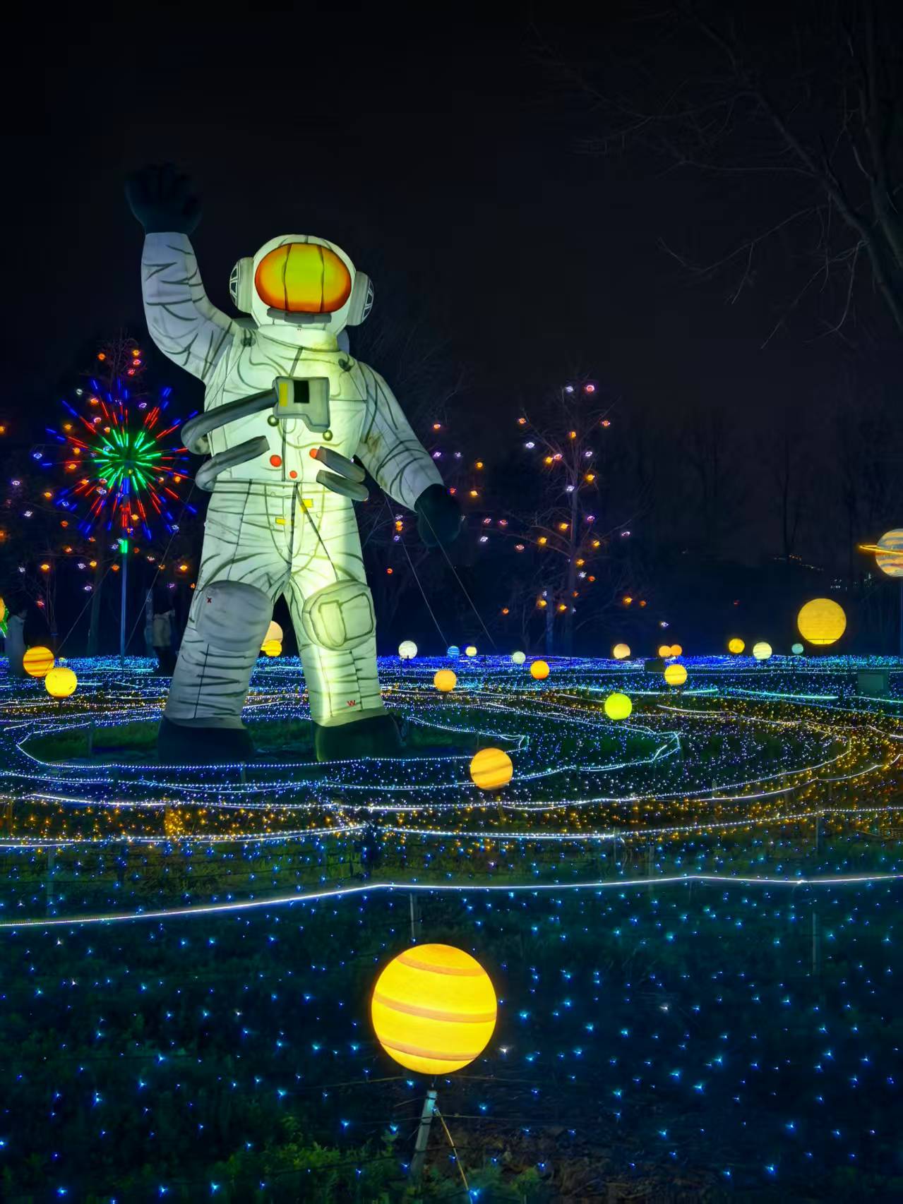“航歷世界”展區(qū)將成都蜀錦的細(xì)膩紋樣與航天光影的浩瀚浪漫完美融合,星河流轉(zhuǎn)的燈陣蜿蜒延伸,讓游客在漫步中仿佛穿梭于天地之間,觸碰心中的航天夢境;“夢回錦城”展區(qū)內(nèi)千燈如晝,光影流轉(zhuǎn)間緩緩勾勒出一幅流動(dòng)的天府盛世圖景,盡顯古蜀大地的人文底蘊(yùn)?!笆L廊”展區(qū)內(nèi),生肖與星座燈組相映成趣,每一盞燈都承載著專屬的新春祝福,傳遞著濃濃的年味。此外,“迷霧森林”采用森林激光、特效激光燈組合,搭配全區(qū)域煙霧與立體音效造景,打造出一片色彩斑斕、如夢似幻的魔幻世界,移步換景間,虛實(shí)交織、似假似真,讓人沉醉其中。