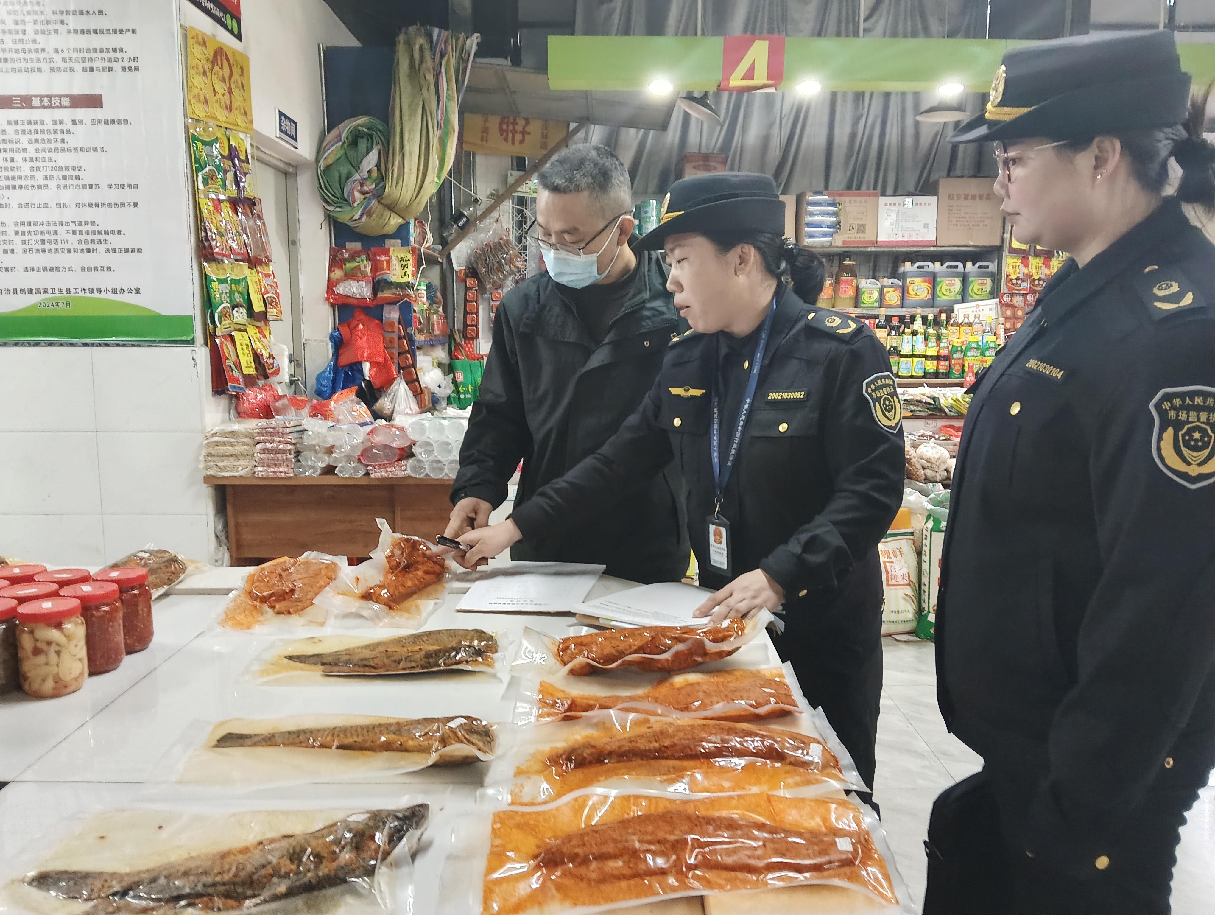 在食品流通與生產(chǎn)監(jiān)管方面,各地分類施策、精準管控。崇左市創(chuàng)新開展“你點我檢進市場 共護團圓年夜飯”活動,在農(nóng)貿(mào)市場設立便民檢測臺,現(xiàn)場為群眾送檢的蔬菜、肉類、大米等食材開展農(nóng)獸藥殘留、新鮮度等指標檢測;玉林市玉州區(qū)市場監(jiān)管局聯(lián)合多部門開展“年貨你點我檢”活動,現(xiàn)場快速檢測、即時反饋結(jié)果,同步普及食品安全知識;蒙山縣市場監(jiān)管局聚焦冷凍食品,核查經(jīng)營戶“三證一碼”,檢查貯存環(huán)境和產(chǎn)品標簽,嚴防過期、變質(zhì)冷凍食品流入市場;象州縣、鹿寨縣重點開展肉品質(zhì)量專項檢查,查驗肉品“兩證兩章”,運用快檢設備檢測鮮肉水分,嚴禁來源不明、未經(jīng)檢疫的肉類上市,守護群眾“肉盤子”安全。