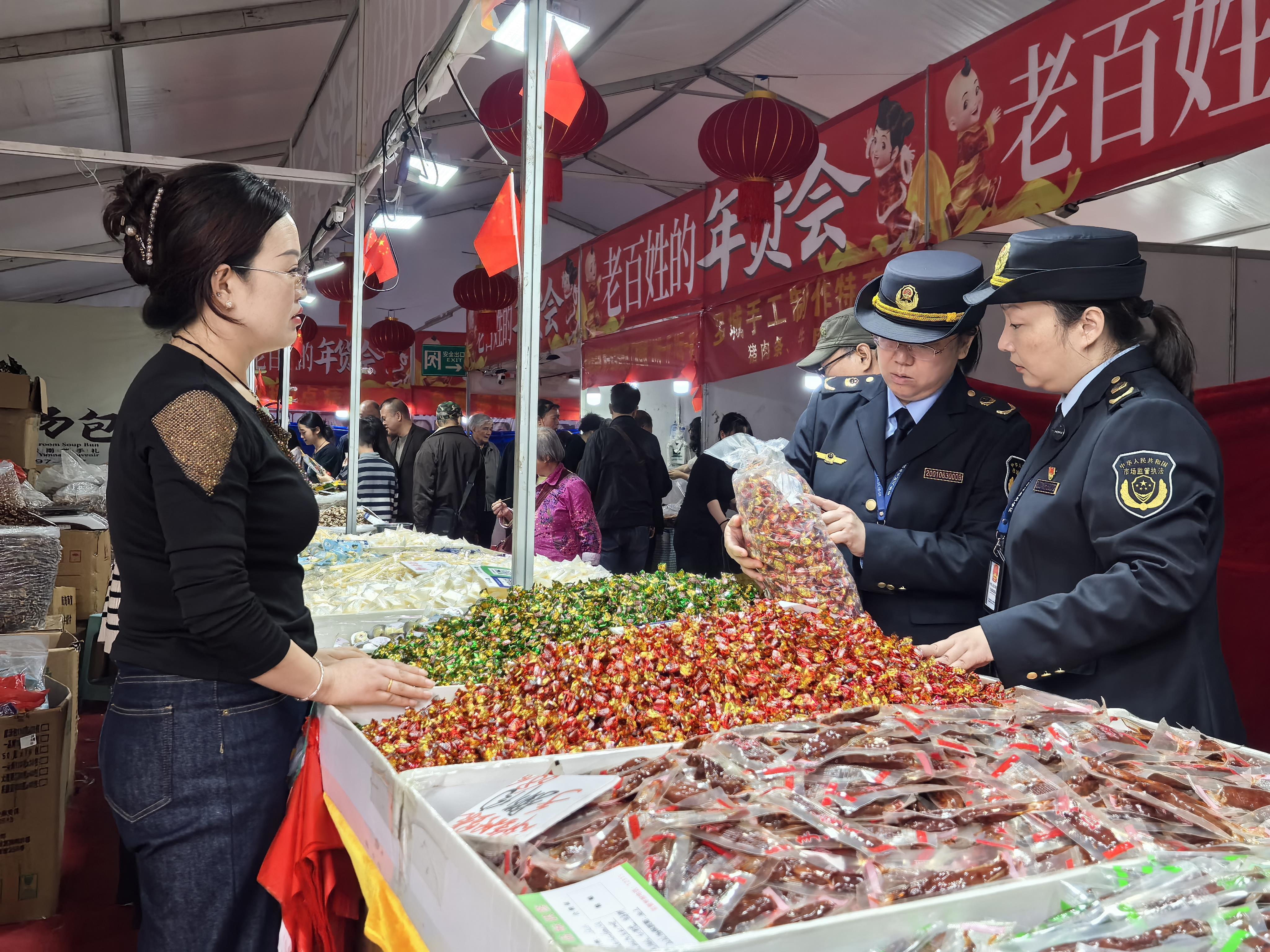 當(dāng)天中午,前來購(gòu)物的消費(fèi)者越來越多,購(gòu)物袋里的臘肉、粽子、糖果散發(fā)著陣陣香氣,臉上的笑容格外真摯?!笆斜O(jiān)藍(lán)”的身影依然在攤位間穿梭。這抹流動(dòng)的“市監(jiān)藍(lán)”讓每一份年貨都承載著安心、讓每一次團(tuán)圓都充滿底氣,成為這個(gè)春節(jié)最動(dòng)人的底色,為消費(fèi)者送上了一份跨越寒冬、溫暖人心的新春守護(hù)。
