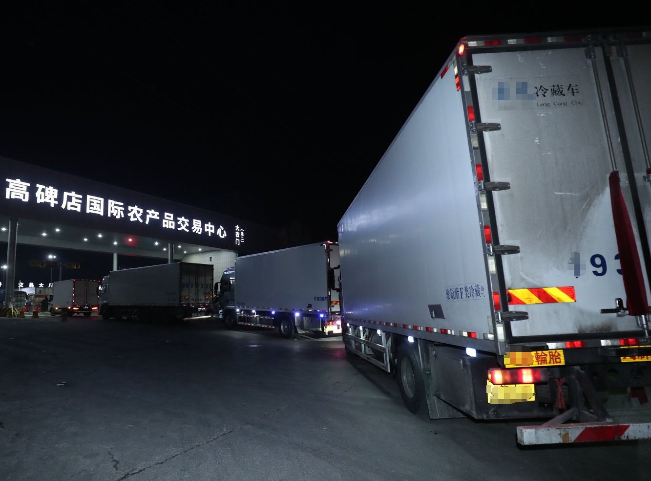 清晨6點30分,華北大地的天色尚未透亮,高碑店市場內(nèi)已是燈火通明、車流如織。滿載著海南釋迦、四川臍橙、云南紅河藍(lán)莓的運輸車輛排成長龍,等待著核驗入場;“板兒爺”們拉著板車,在檔口與物流車間穿梭,車輪碾過地面吱呀作響,留下一串急促的聲響。