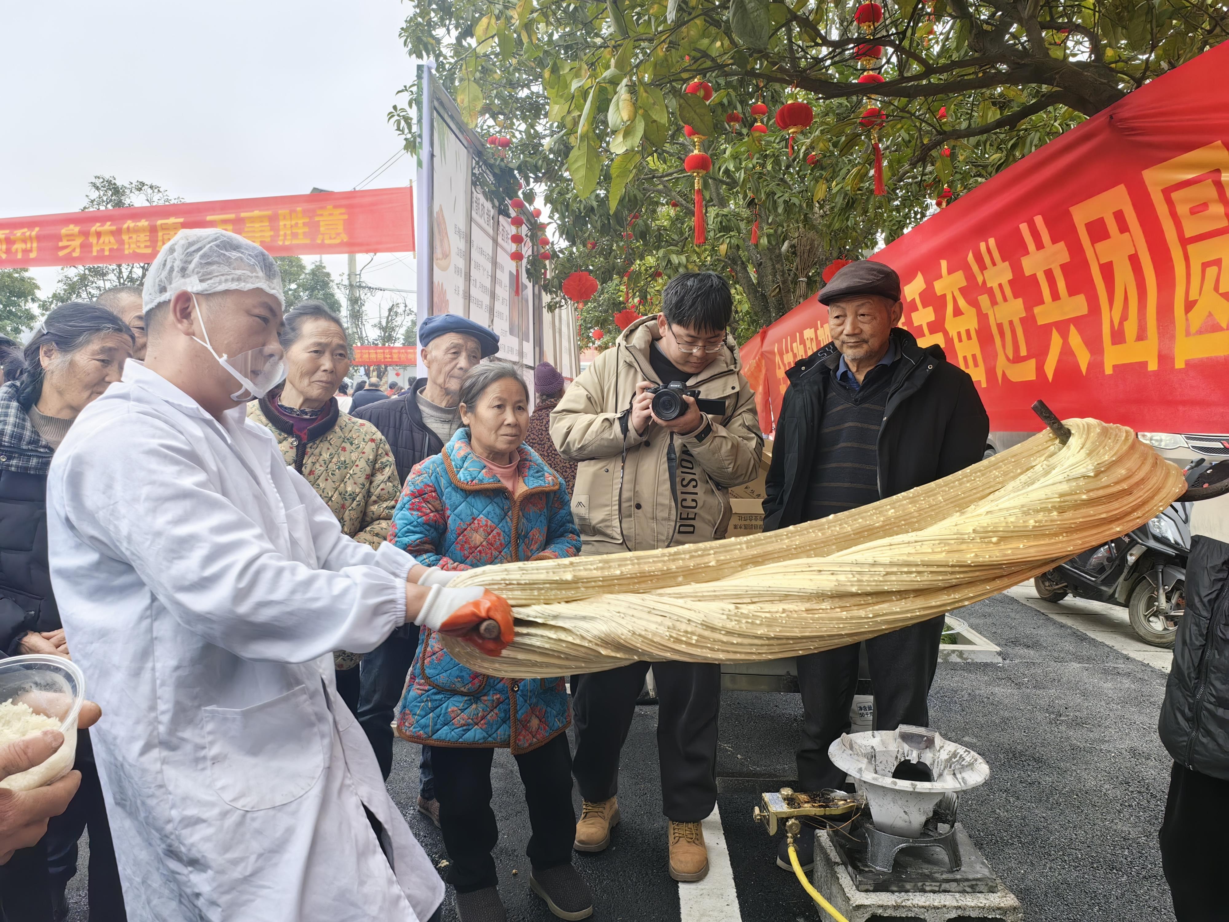 不遠(yuǎn)處,一口大鐵鍋架在簡易灶臺上,鍋底柴火燒得正旺,幾位村民正在展示“拉姜糖”的絕活。熬制成琥珀色的糖稀被反復(fù)拉扯、折疊,在寒冷的空氣中逐漸變硬、泛白。濃郁的姜香彌漫四周,這是湘西人抵御濕寒的法寶,也是過年待客的必備零食。