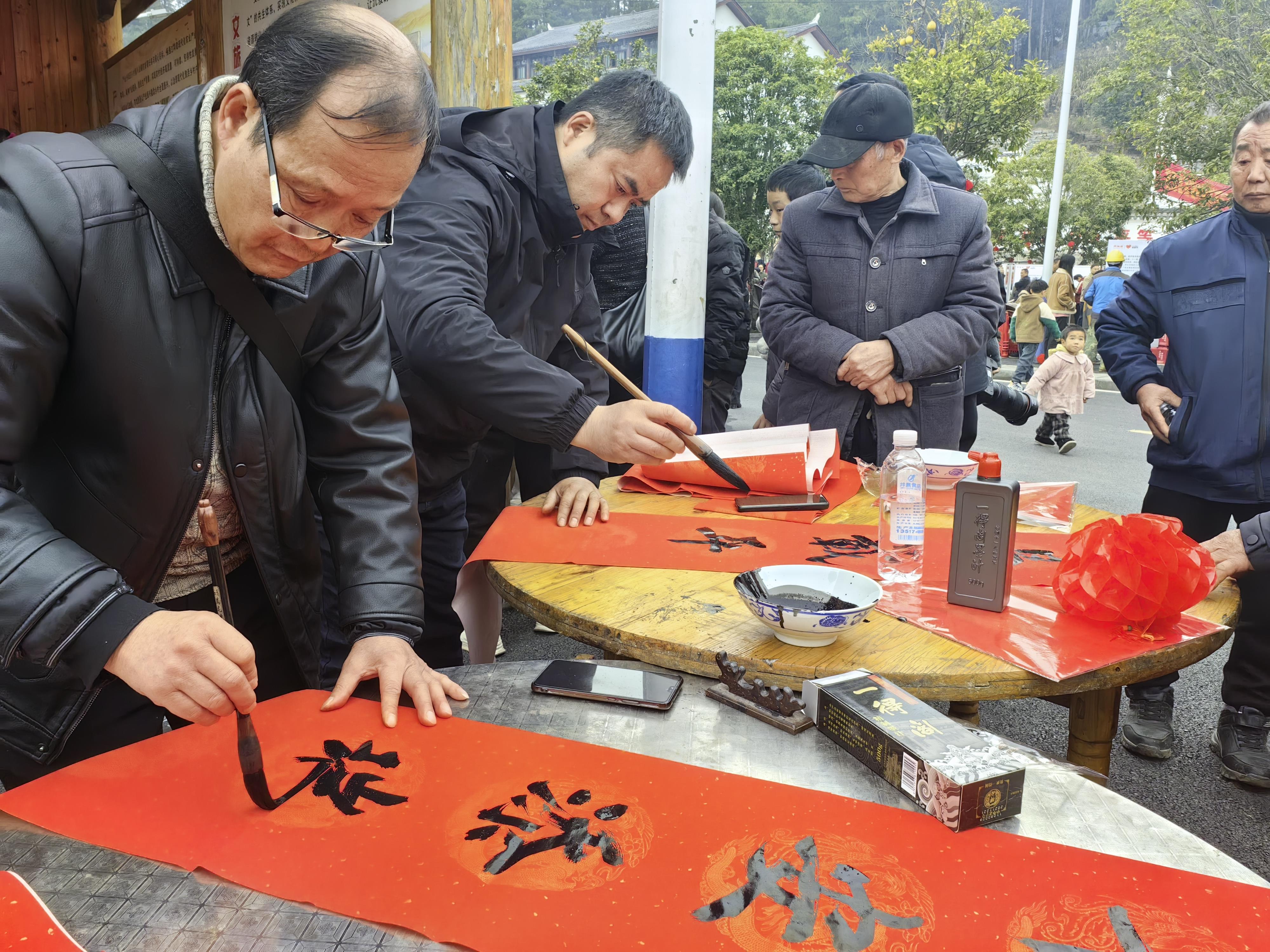 而在村部廣場的另一側(cè),翰墨飄香。村里的書法愛好者和受邀而來的書法家正在揮毫潑墨,寫春聯(lián)、送福字。紅紙鋪在長桌上,筆走龍蛇間,“鄉(xiāng)村振興春風(fēng)暖,產(chǎn)業(yè)興旺日子紅”等一副副寓意吉祥的對聯(lián)躍然紙上。村民們挨個排隊,爭相領(lǐng)取這份充滿文化氣息的新年禮物。75歲的楊友月老人領(lǐng)到“福”字時樂得合不攏嘴:“以前過年都是買印刷好的對聯(lián),現(xiàn)在是名家手寫,這年味兒,不僅在嘴里,更在心里?!?/p>